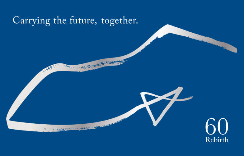 素材、技術、デザイン、そして環境への配慮。全ての面で新しい挑戦に取り組んだ「60周年モデル」コレクションは、暦の一巡りから新たなステージへと向かう「未来を感じさせる鞄」として創造されています。