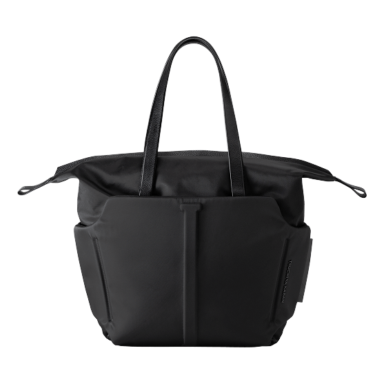 建築を思わせるモダンなデザインで、オンオフ問わず楽しめる洗練されたスタイルに仕立てた大容量トート。メイン素材には上品な光沢感のイタリア製上質ナイロンを贅沢に使い、本体はA3クリアファイルまで収納できる充実のサイズです。